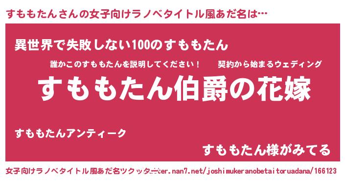 | 男性向けラノベタイトル風あだ名 | 『うちの娘の為ならば、俺はもしかしたらすももたんも倒せるかもしれない。』 |