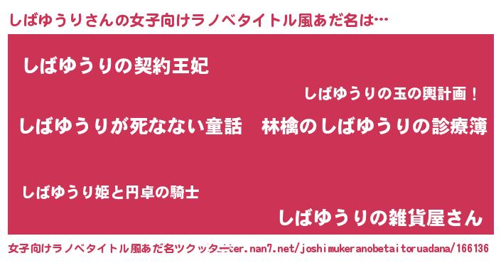 | 男性向けラノベタイトル風あだ名 | 『魔弾の王としばゆうり』 |