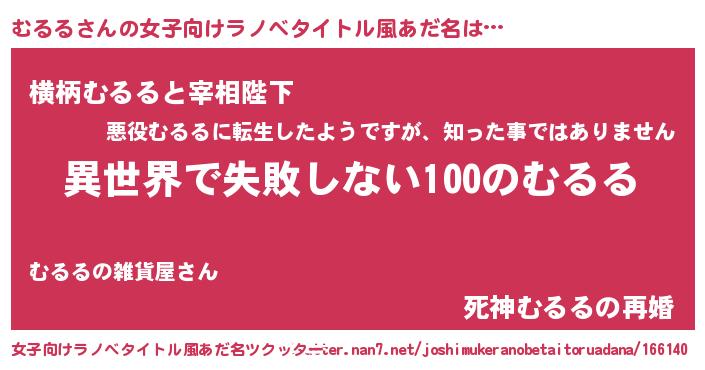 | ヒーロー風カッコイイあだ名 | 『ネオムルル』『慈愛の使者むるる』 |
