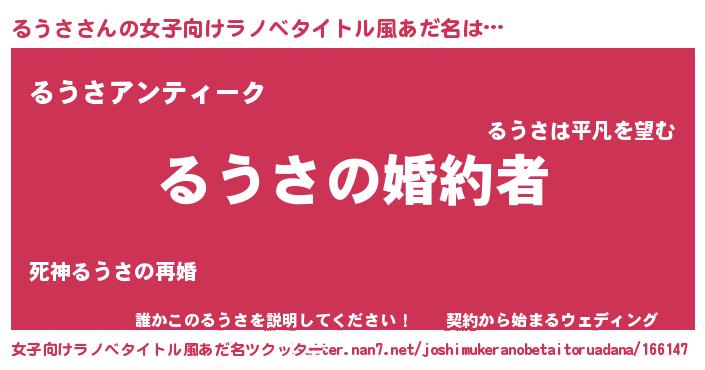 | ヒーロー風カッコイイあだ名 | 『ウルトラるうさマン』『スーパールウサ』 |