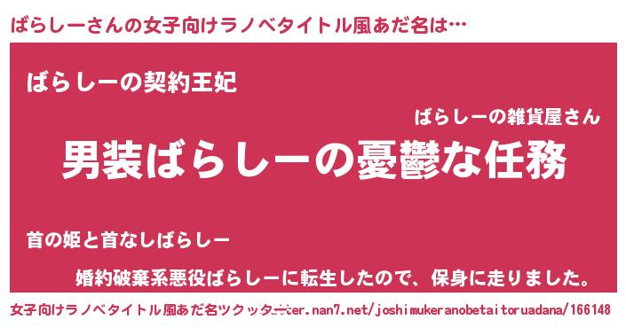 | 男性向けラノベタイトル風あだ名 | 『冴えないばらしーの育てかた』 |