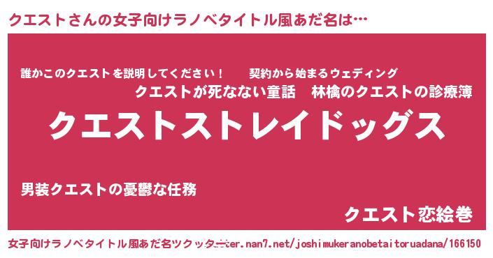 恥ずかしいあだ名 | 『クエストデラックス』『クエちん』 |