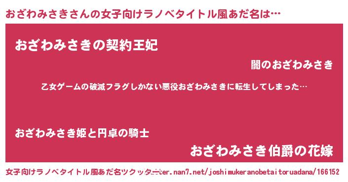 | 意味不明あだ名 | 『住所不定無職おざわみさき(14歳)』 |