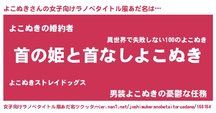 | 男性向けラノベタイトル風あだ名 | 『はたらくよこぬきさま!』 |