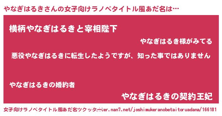 | 男性向けラノベタイトル風あだ名 | 『この素晴らしい世界にやなぎはるきを!』 |
