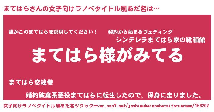 | 男性向けラノベタイトル風あだ名 | 『まてはらの嫁は女の子じゃないと思った?』 |