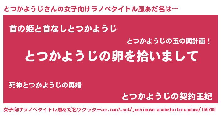 | 男性向けラノベタイトル風あだ名 | 『とつかようじの嫁は女の子じゃないと思った?』 |