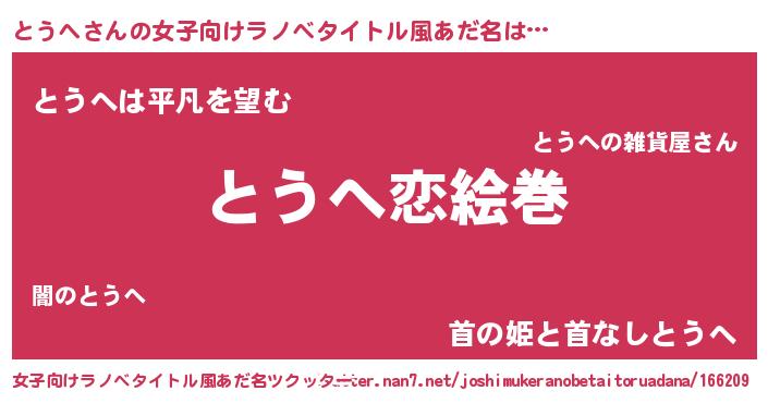 | ヒーロー風カッコイイあだ名 | 『愛の使者とうへ』『暗黒騎士トウ』 |