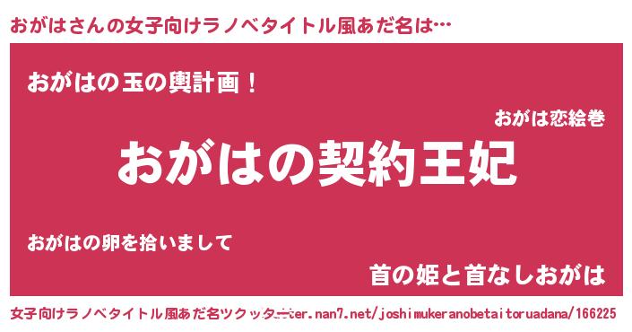 | 男性向けラノベタイトル風あだ名 | 『誰もが恐れるあのおがはが、ぼくの専属メイドになるようです。』 |