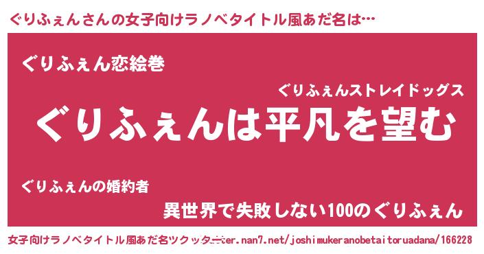 | 胡散臭い通販商品みたいなあだ名 | 『信頼と実績のペンダント…その名も「ぐりふぇん」』 |