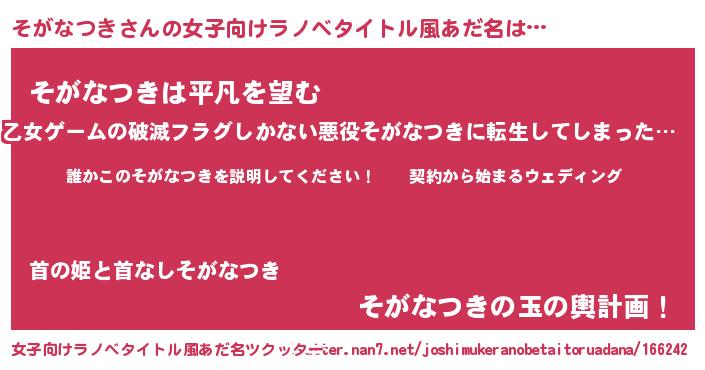 | 胡散臭い通販商品みたいなあだ名 | 『億万長者になれるブレスレット…その名も「そがなつき」』 |