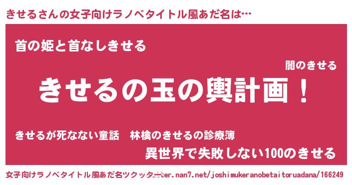 | ヘコむあだ名 | 『きせる(笑)』『豆乳』『きせお』 |