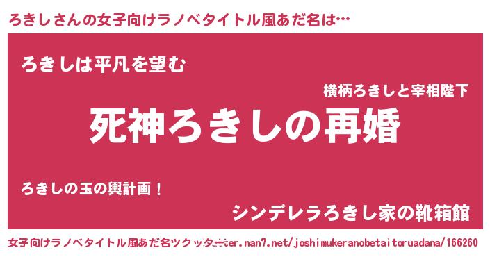 | 男性向けラノベタイトル風あだ名 | 『ノーゲーム・ノーロキシ』 |