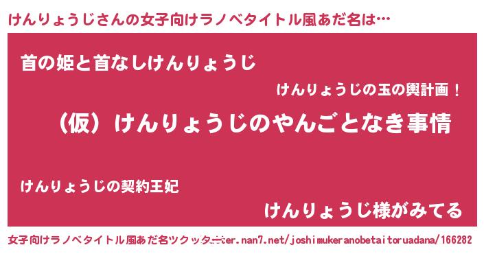 | 男性向けラノベタイトル風あだ名 | 『けんりょうじの憂鬱』 |