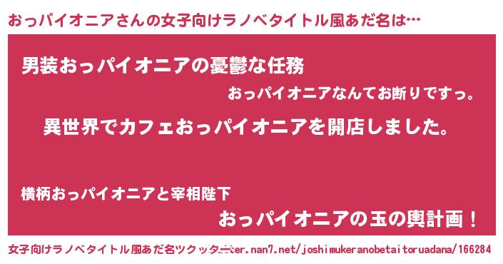 | 男性向けラノベタイトル風あだ名 | 『誰もが恐れるあのおっパイオニアが、ぼくの専属メイドになるようです。』 |