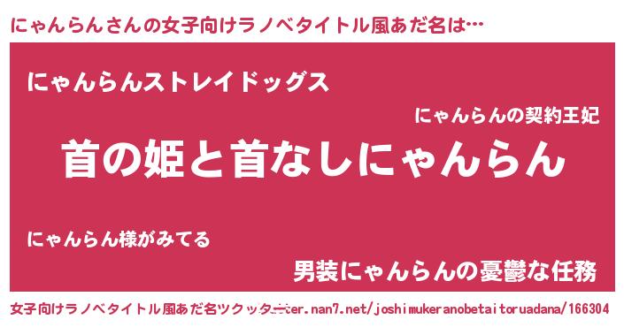 | 男性向けラノベタイトル風あだ名 | 『はたらくにゃんらんさま!』 |
