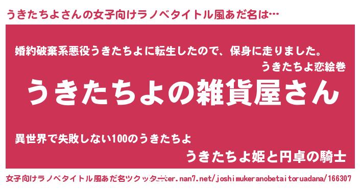 | 男性向けラノベタイトル風あだ名 | 『やはりうきたちよの青春ラブコメはまちがっている 』 |