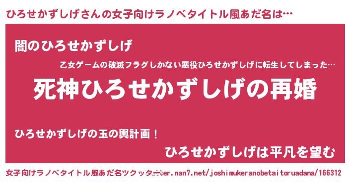 | 男性向けラノベタイトル風あだ名 | 『ノーゲーム・ノーヒロセカズシゲ』 |