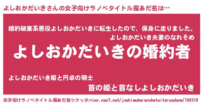 | ファンタジー風あだ名 | 『エターナルヨシオカダイキー』 |