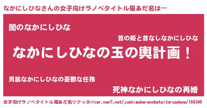 | ヘコむあだ名 | 『なかにしひな(笑)』『レバニラ』 |