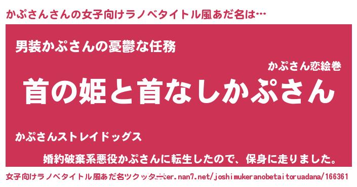 | 意味不明あだ名 | 『たけのこ科かぷさん属』『自称かぷさん』 |