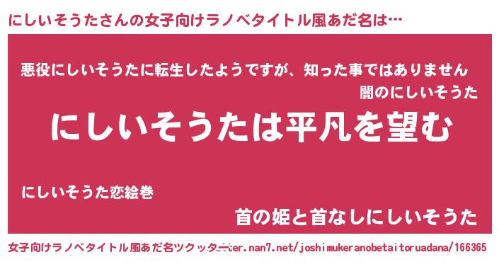 | 料理風あだ名 | 『にしいそうたの豆乳スープ』 |