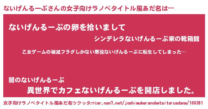 | ポケモン風あだ名 | 『ナーイイ』『ヒナイゲンループ』 |