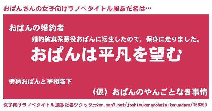 | 意味不明あだ名 | 『とにかく怪しいおぱん』『自称おぱん』 |
