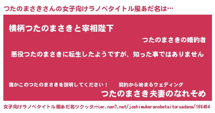 | 男性向けラノベタイトル風あだ名 | 『この素晴らしい世界につたのまさきを!』 |