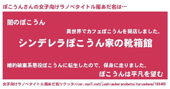 | 男性向けラノベタイトル風あだ名 | 『緋弾のポコウン』『ポコウンスレイヤー』 |