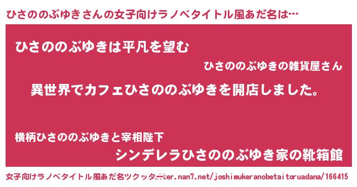 | ヒーロー風カッコイイあだ名 | 『ネオヒサノノブユキ』『暗黒騎士ヒサ』 |