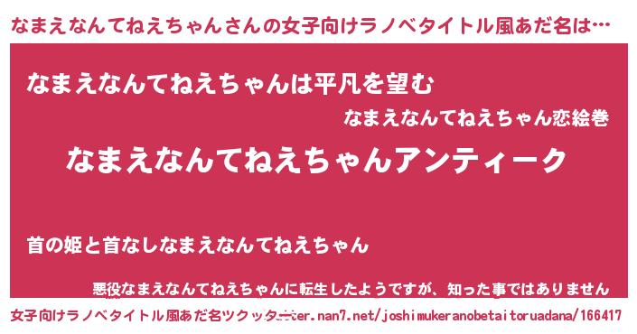 | 意味不明あだ名 | 『自称なまえなんてねえちゃん』 |