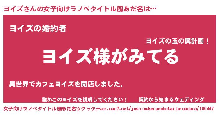 | ファンタジー風あだ名 | 『ファントムヨイス』『ヨイフェル』 |