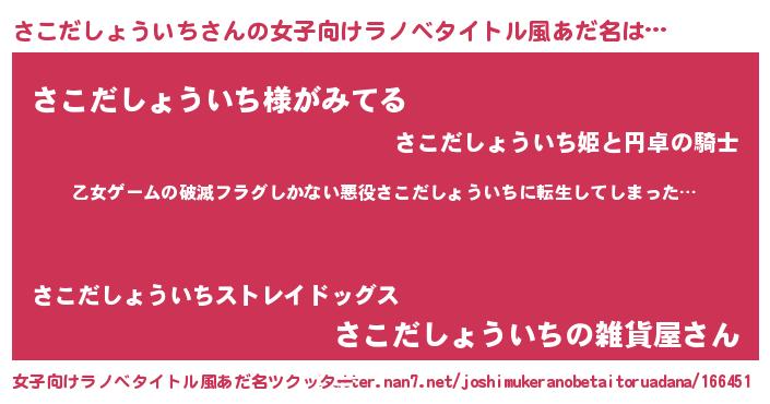 | 意味不明あだ名 | 『住所不定無職さこだしょういち(85歳)』 |