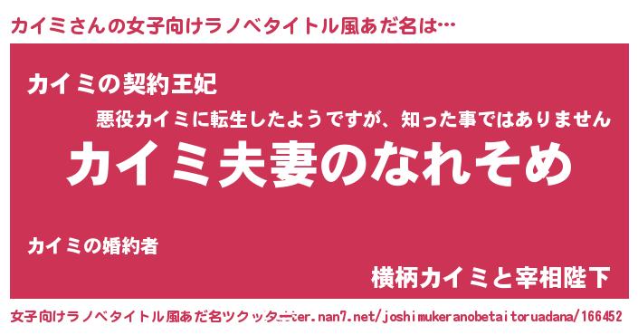 | ヘコむあだ名 | 『カイミ(笑)』『なまこ酢』『カイを』 |