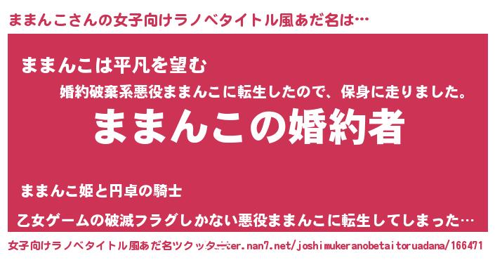 | 胡散臭い通販商品みたいなあだ名 | 『運命の人と巡り会える高級そうな絵画…その名も「ままんこ」』 |