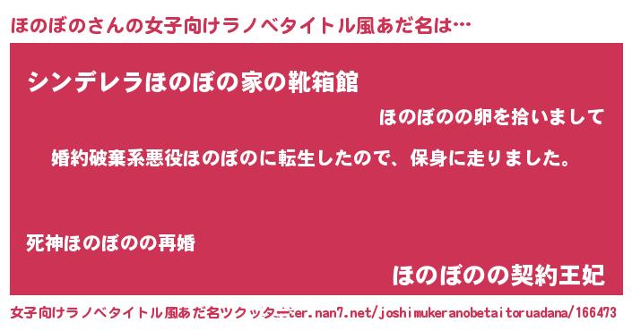 | 胡散臭い通販商品みたいなあだ名 | 『絶対に幸福をもたらす水素水…その名も「ほのぼの」』 |