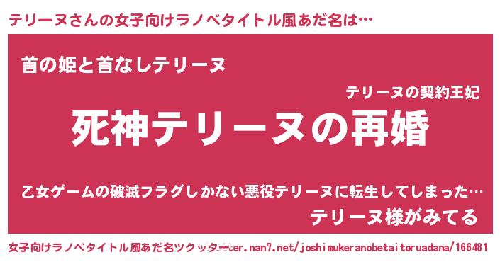 | 男性向けラノベタイトル風あだ名 | 『ノーゲーム・ノーテリーヌ』 |