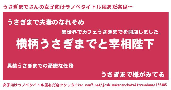 | ヘコむあだ名 | 『うさぷりん』『うさぎまで(小並感)』 |