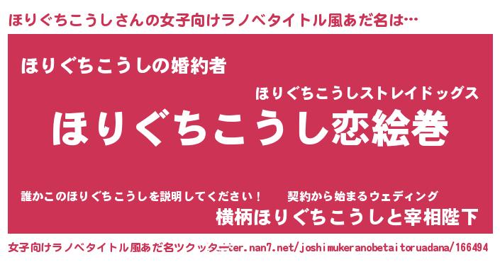 | 男性向けラノベタイトル風あだ名 | 『ノーゲーム・ノーホリグチコウシ』 |