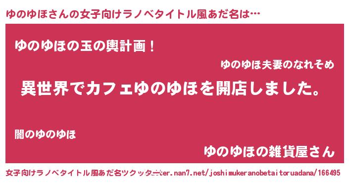 | 男性向けラノベタイトル風あだ名 | 『誰もが恐れるあのゆのゆほが、ぼくの専属メイドになるようです。』 |