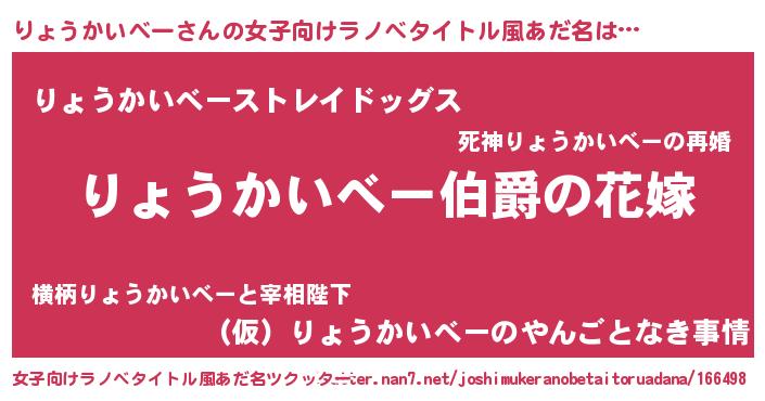 | 男性向けラノベタイトル風あだ名 | 『やはりりょうかいべーの青春ラブコメはまちがっている 』 |
