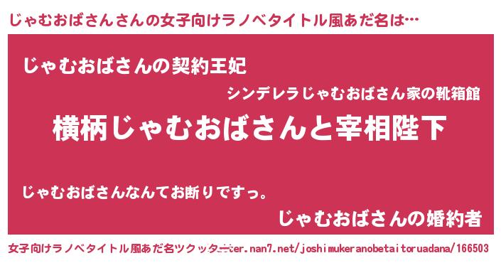 | 男性向けラノベタイトル風あだ名 | 『じゃむおばさんに滅ぼされるだけの簡単なお仕事です』 |