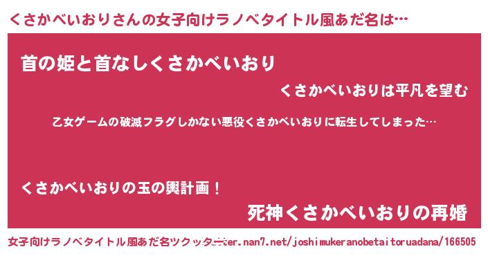 | 胡散臭い通販商品みたいなあだ名 | 『世界中を虜にした100年もののヴィンテージワイン…その名も「くさかべいおり」』 |
