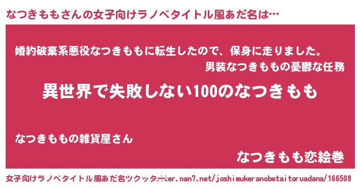 | 男性向けラノベタイトル風あだ名 | 『なつきももという概念が存在しない退屈な世界 』 |