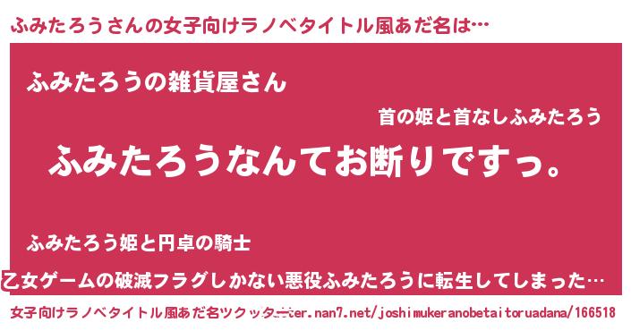 | 男性向けラノベタイトル風あだ名 | 『魔法科高校のふみたろう』 |