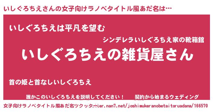 | 男性向けラノベタイトル風あだ名 | 『やはりいしぐろちえの青春ラブコメはまちがっている 』 |