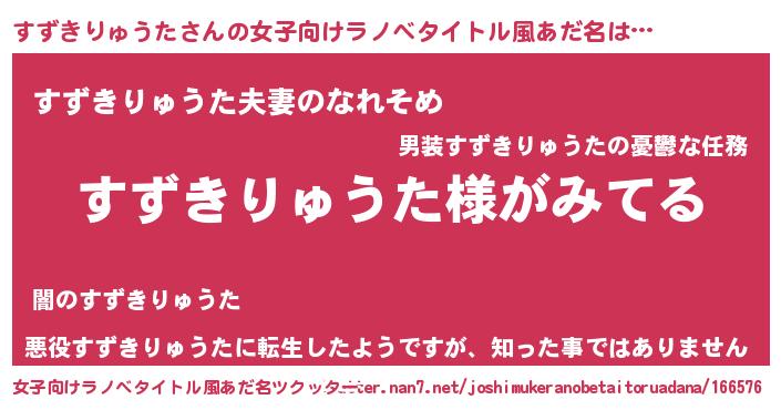 | 男性向けラノベタイトル風あだ名 | 『すずきりゅうたの嫁は女の子じゃないと思った?』 |