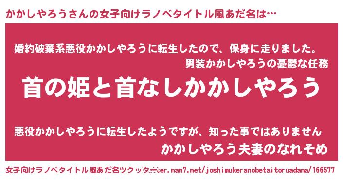 | 男性向けラノベタイトル風あだ名 | 『はたらくかかしやろうさま!』 |