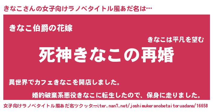| 男性向けラノベタイトル風あだ名 | 『ノーゲーム・ノーキナコ』 |